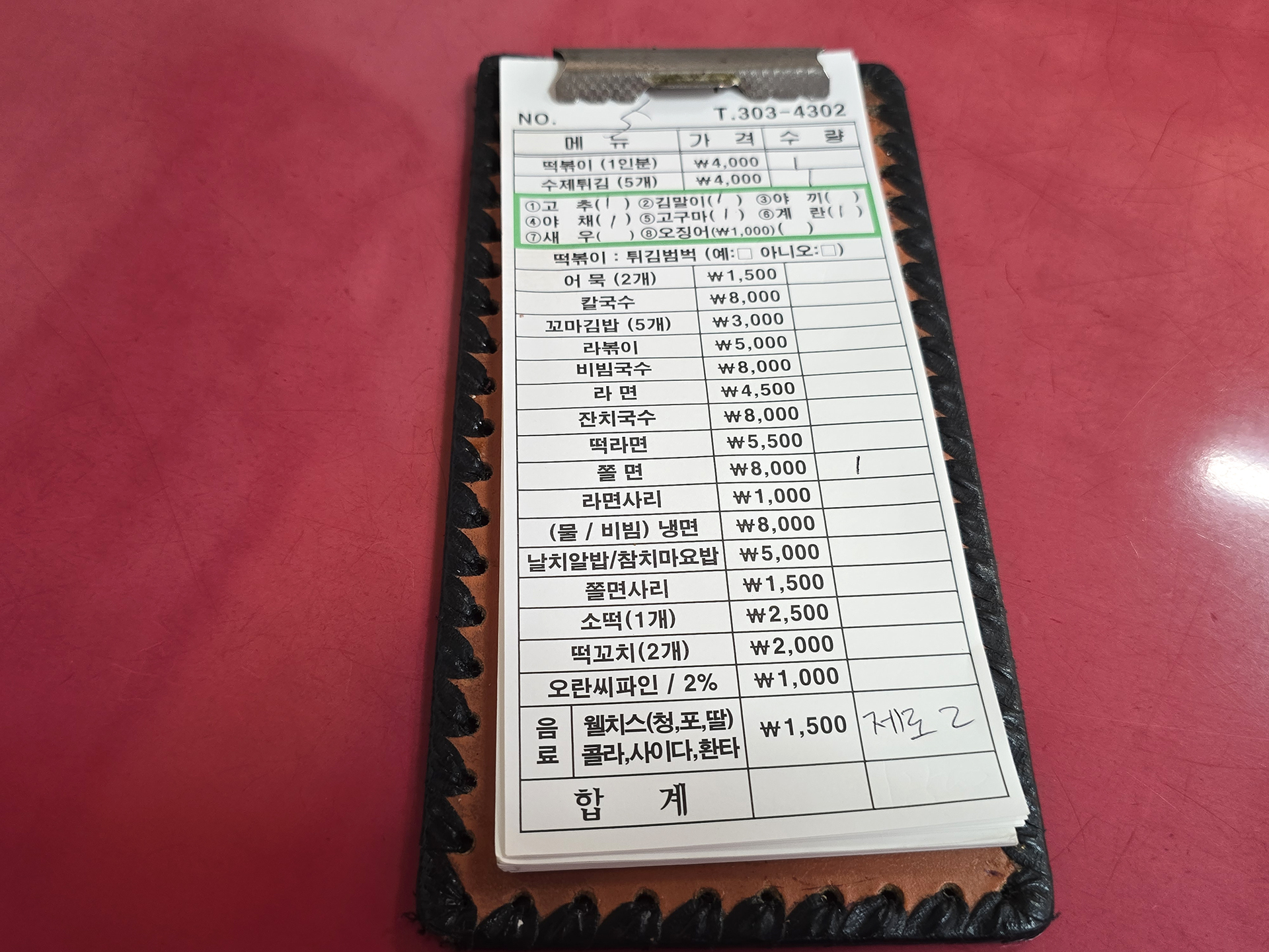저희는 떡볶이 1인분과 고추튀김, 김말이 튀김, 야채튀김, 고구마튀김, 계란 그리고 쫄면을 주문했습니다.