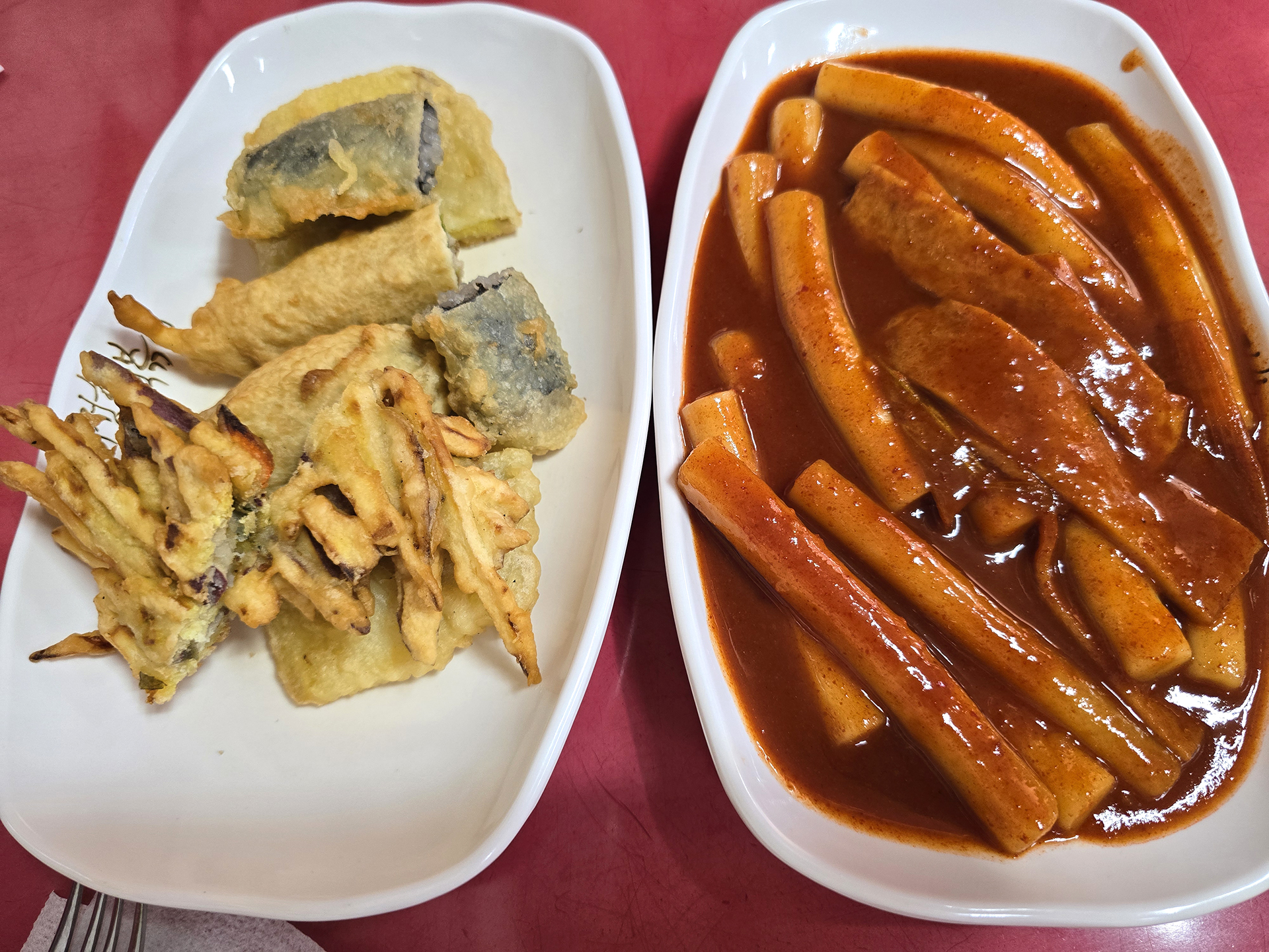 수제튀김과 떡볶이가 나왔습니다.